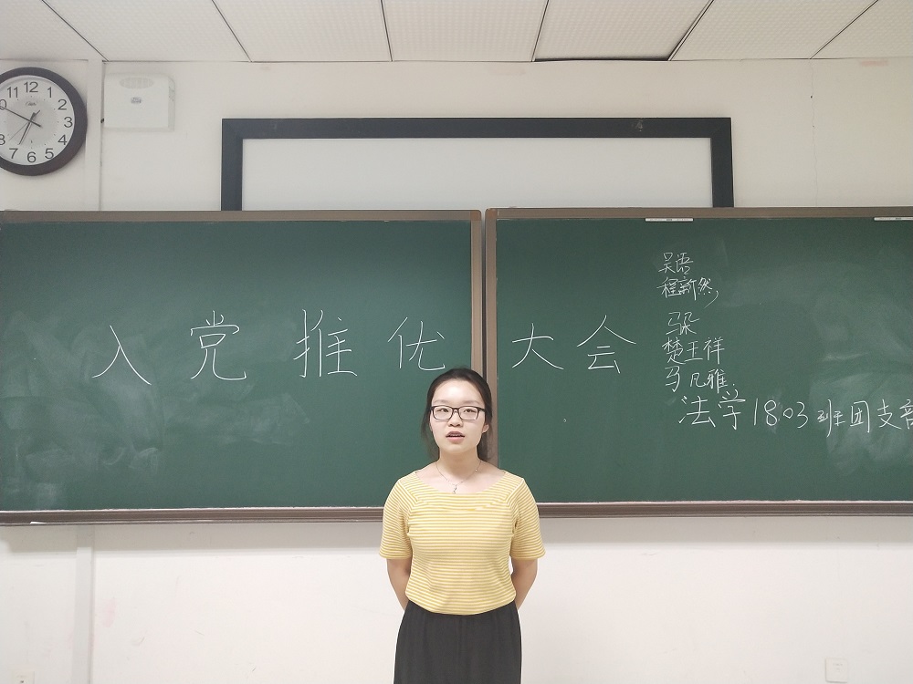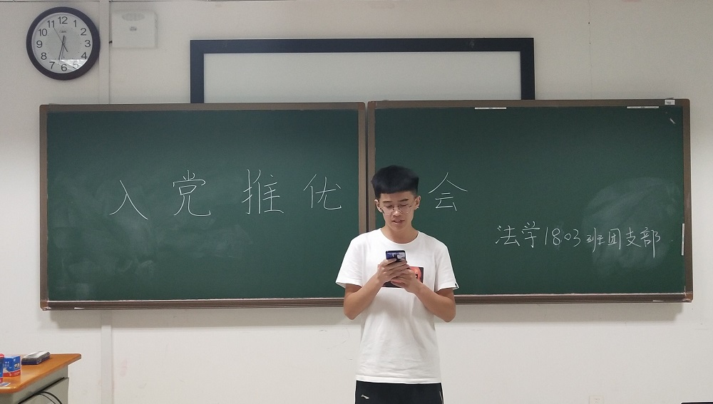 分团委入党推优工作,9月24日,法学1803班团支部在研究生楼A105举办入党推优大会。