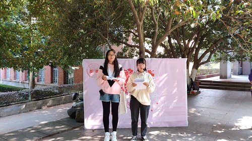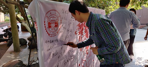 10月22日,为了进一步加强防艾防结核知识的宣传,班级同学走上街头,将精心准备的情景剧和演讲通过路演的形式呈现给更多的游客和同学。活动在湖南大学东方红广场一侧举行,几位同学通过情景剧的形式,真实地还原艾滋病患者被歧视的情形。同时街头宣传者对患病者的保护和对艾滋病相关知识的讲述也取得良好的效果。班级同学的演讲更将“青春不染”的活动主题有力地通过具体的事例和生动的阐释传达出来。随着活动进程的不断推进,越来越多的同学和游客被吸引,逐渐聚拢在活动现场,大家有序地在签名板上写下自己的名字和温暖的话语,以此表达自己对艾滋病人和结核病人的支持。同学们还将精心制作的传单分发给路人们,整个活动循序渐进,形式新颖多样,引起热烈反响。