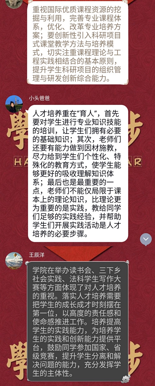 的人才培养工作进行了回顾、给予了评价,也对下一步的“落实人才培养中心地位”工作提出了建议,并讨论了学生党员及辅导员实际行动层面的问题。希望同学们的意见与建议能够帮助棋牌游戏官网
