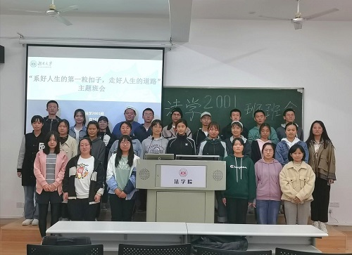 晚8点30分,“系好人生第一粒扣子,走好人生道路”主题团日活动画下了完美的句号。此次活动在增强班级凝聚力的同时,为法学2001班的同学们如何走好大学路,人生路提供了启示。古有言:“丈夫志,当景盛,耻闲疏。”一代人有一代人的长征,一代人有一代人的担当。习近平总书记对湖南大学的青年学子寄予了殷切期望,新时代是一个英雄辈出的时代,青年人正逢其时。同学们在此感召下纷纷表示,定当不负青春、不负韶华、不负时代,持德坚守,不断奋斗,系好人生第一粒扣子,同人民一道拼搏、同祖国一道前进。