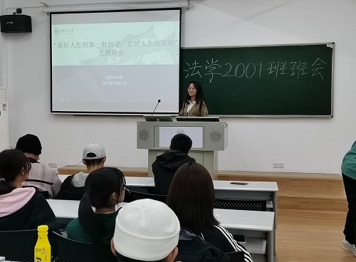 “不负青春,不负韶华。利用一切的时间掌握有用的知识,形成成熟的人生观,价值观,走好人生的路,系好人生的第一颗纽扣。”为深入学习贯彻习近平新时代中国特色社会主义思想,落实习近平总书记在湖南大学考察时的重要讲话精神,大力弘扬与传承“传道济民、经世致用”的书院文化精髓,法学2001班在团支书赵瑞的组织下于2020年10月17日开展了“系好人生第一粒扣子,走好人生道路”主题团日活动。