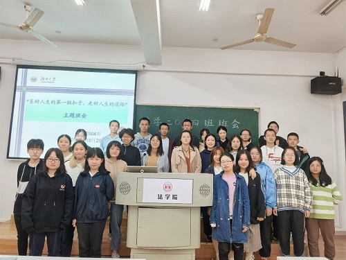 为深入学习贯彻习近平总书记在湖南大学考察时的重要讲话精神,引导学生树立正确的世界观、人生观、价值观,2020年10月20日下午,法学2004班在法棋牌游戏官网