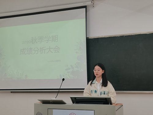 本次会议共分为四项议程,分别是第一学期成绩分析、同学圆桌讨论、上学期工作总结和本学期工作计划和老师交流指导。主持人李子韩同学致开场词后,本次班会正式开始。