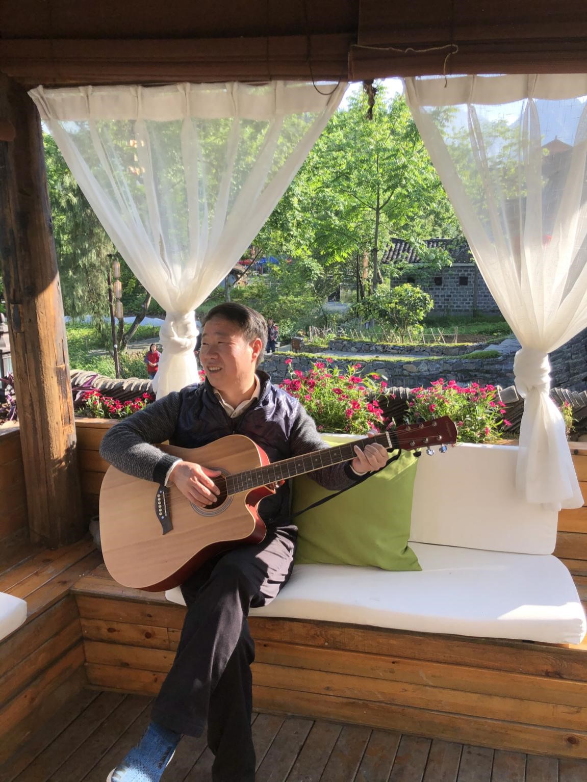 (图:生活中郑老师多才多艺,喜欢弹吉它、弹钢琴,学术与艺术交响)