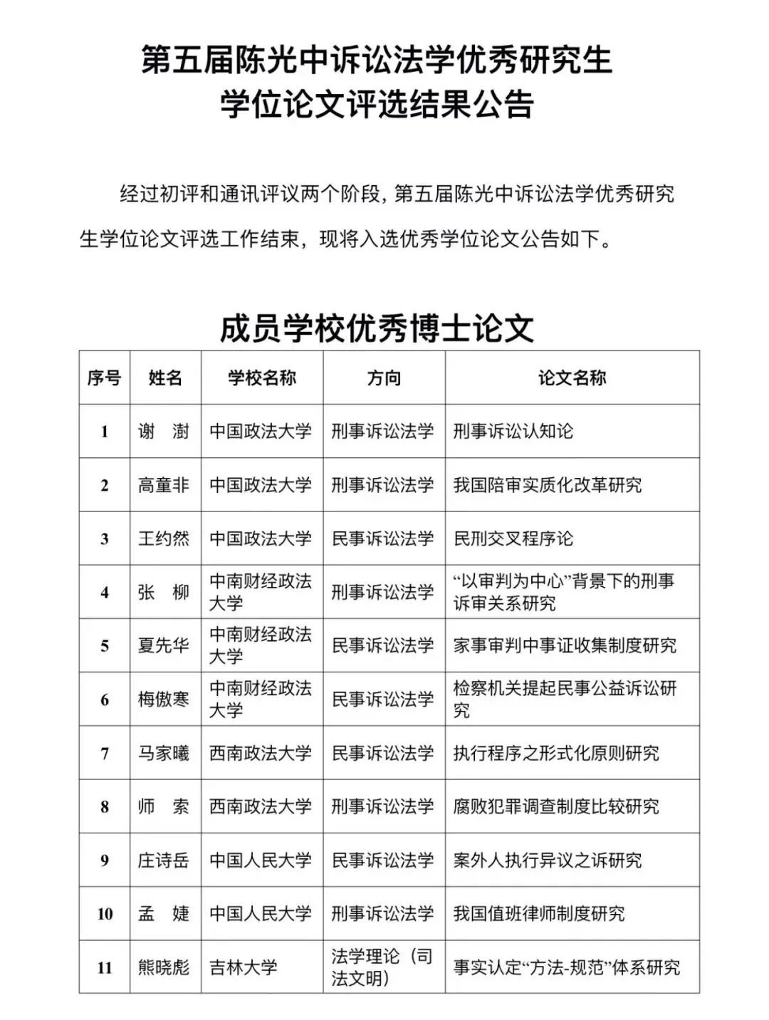 公告转自 | 中国政法大学诉讼法学研究院