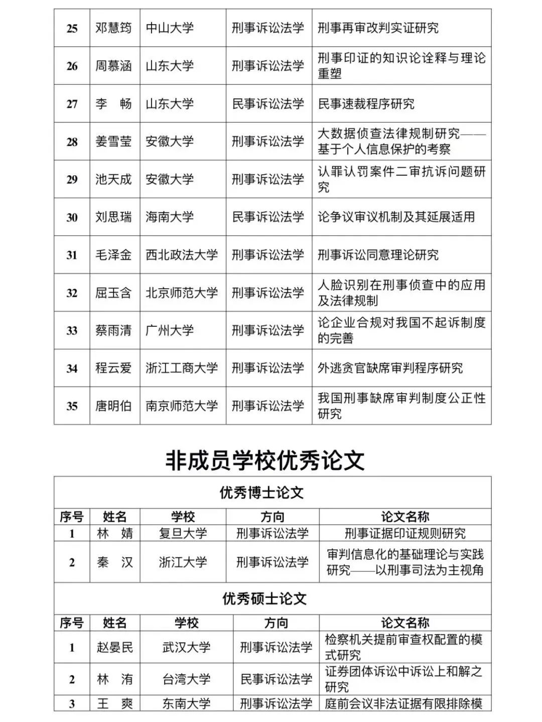 第五届陈光中诉讼法学优秀研究生学位论文奖于近日公布。本届评奖从三大诉讼法领域共评选出优秀博士论文23篇,优秀硕士论文40篇。棋牌游戏官网
