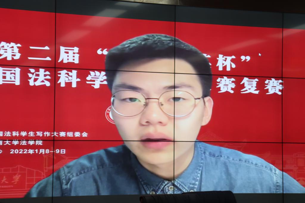 为了疫情防控需要,复赛通过线上方式进行。复赛也分为法学论文、案例评析、经典书评三组进行。各参赛选手通过6分钟PPT展示及口头陈述介绍其论文的设计思路、论文观点及创新之处。专家组进行评审及提问,选手进行答辩阐明。专家组对每位选手的作品给出相应建议。评审结果公示结束后,主办方将举行专门的颁奖仪式。