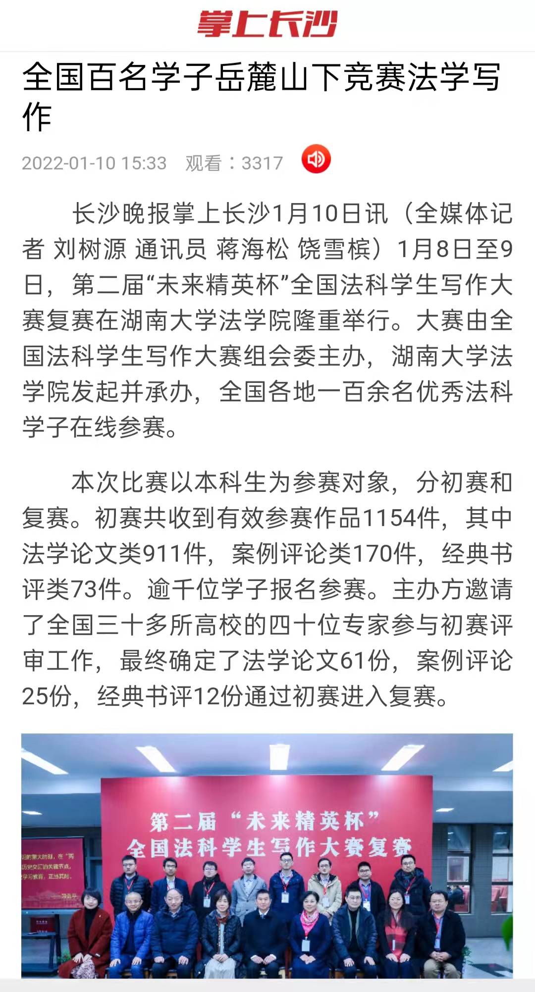 长沙晚报掌上长沙1月10日讯(全媒体记者 刘树源 通讯员 蒋海松 饶雪槟)1月8日至9日,第二届“未来精英杯”全国法科学生写作大赛复赛在棋牌游戏官网