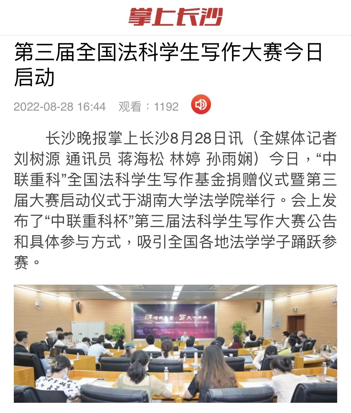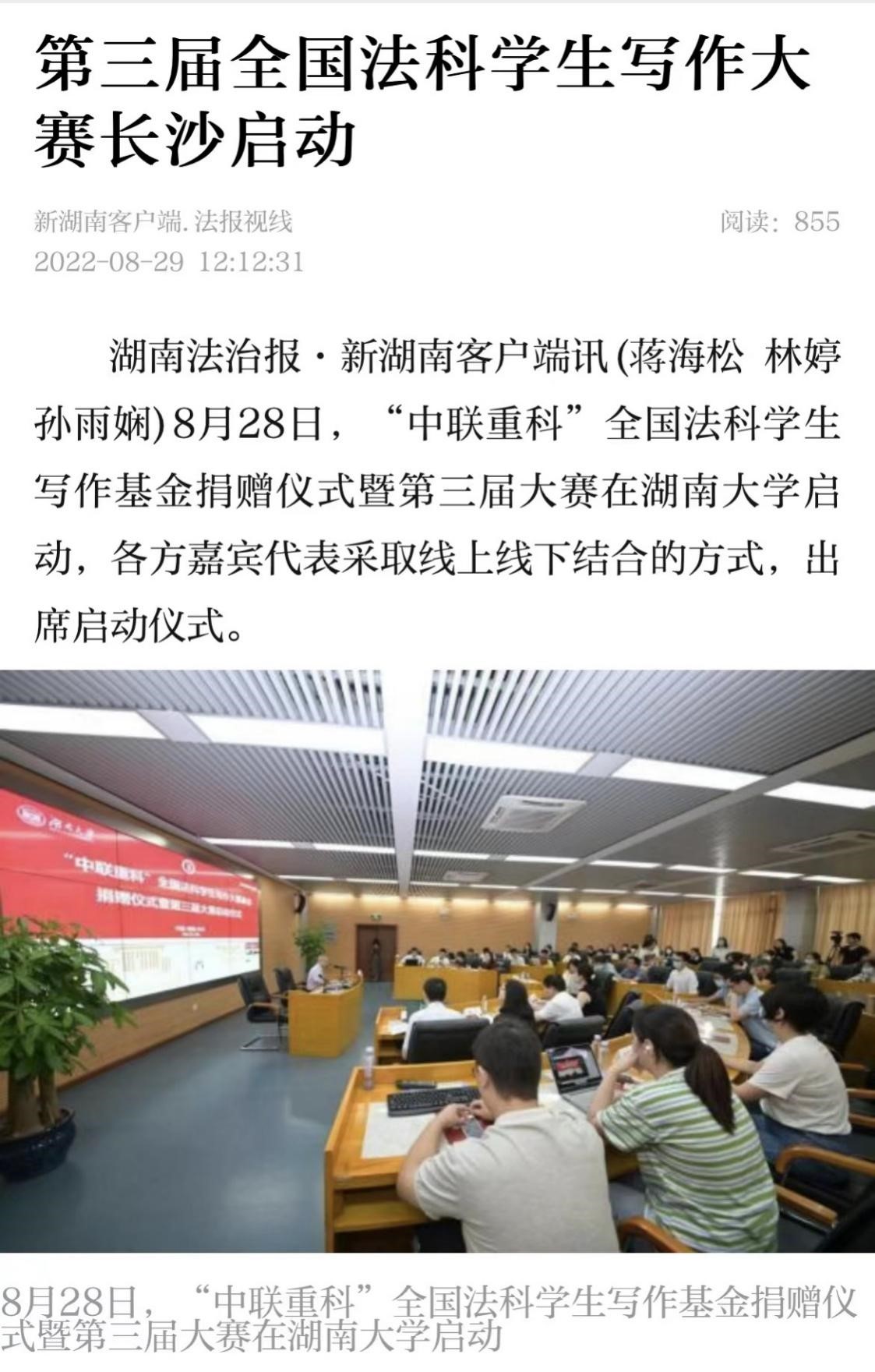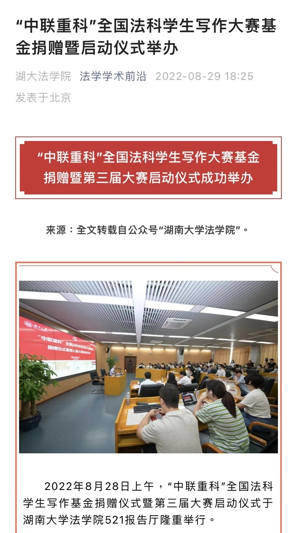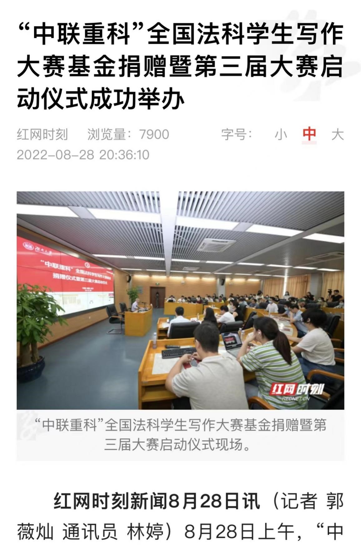 2022年8月28日上午,“中联重科”全国法科学生写作基金捐赠仪式暨第三届大赛启动仪式于棋牌游戏官网