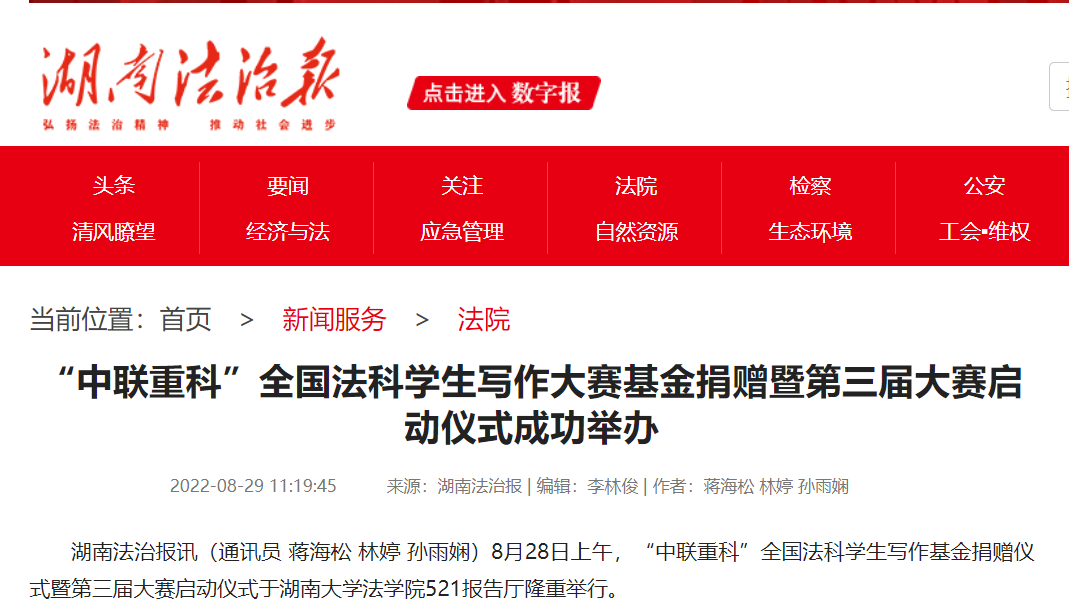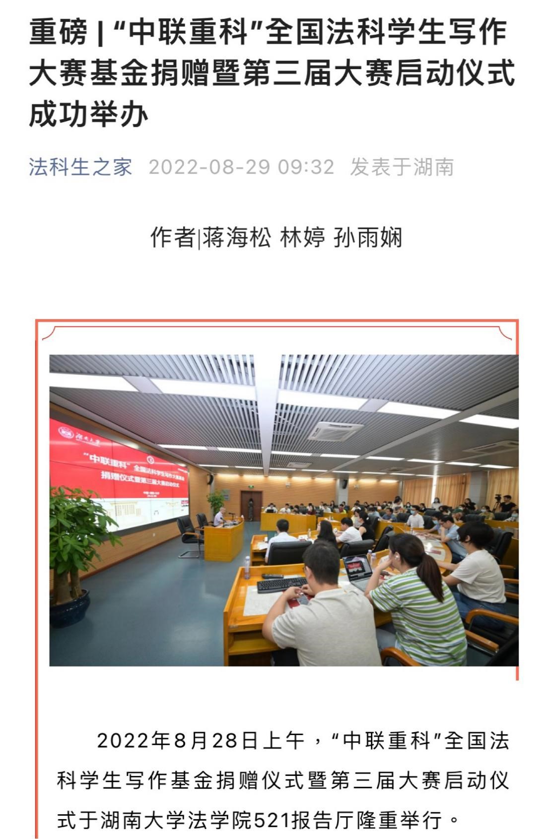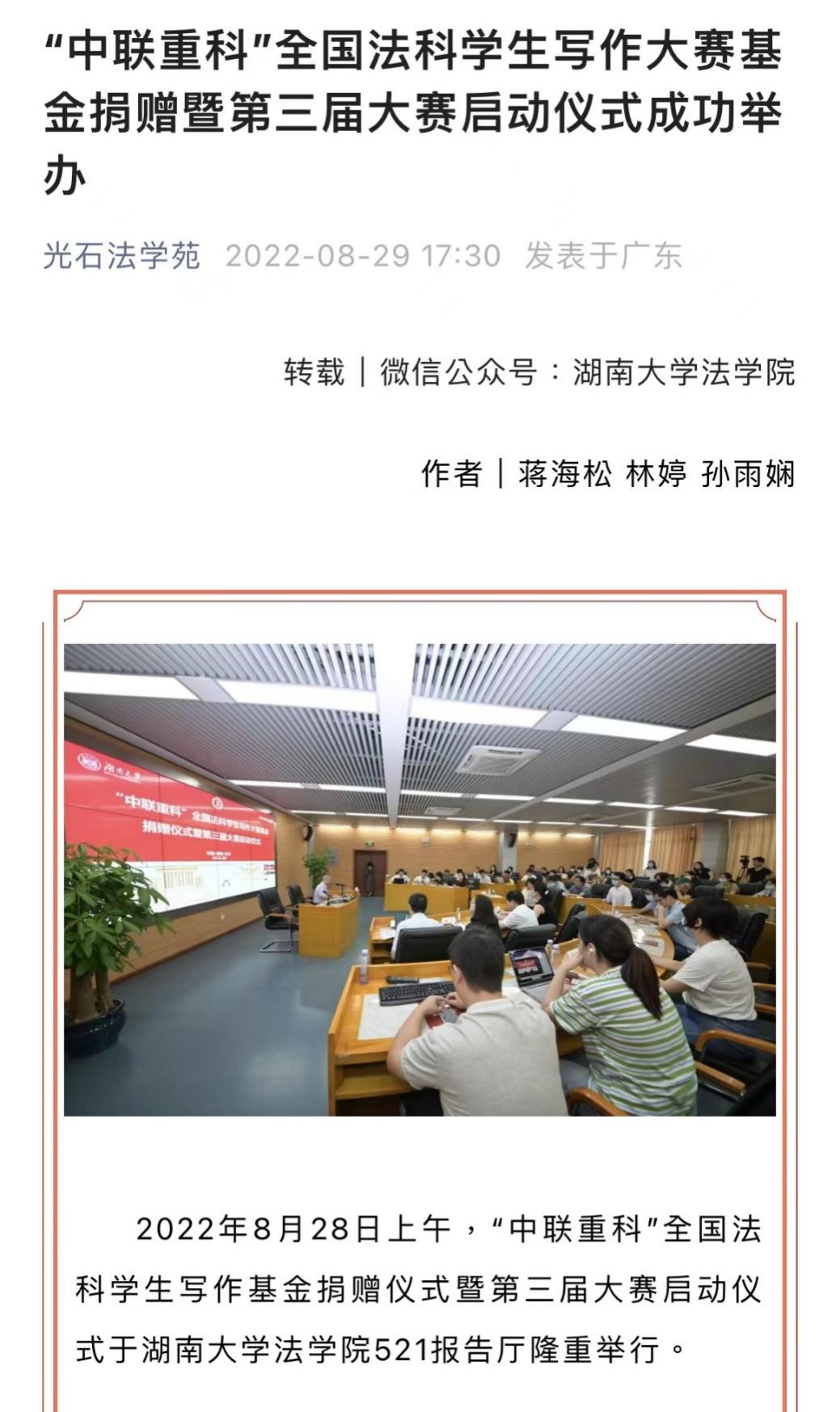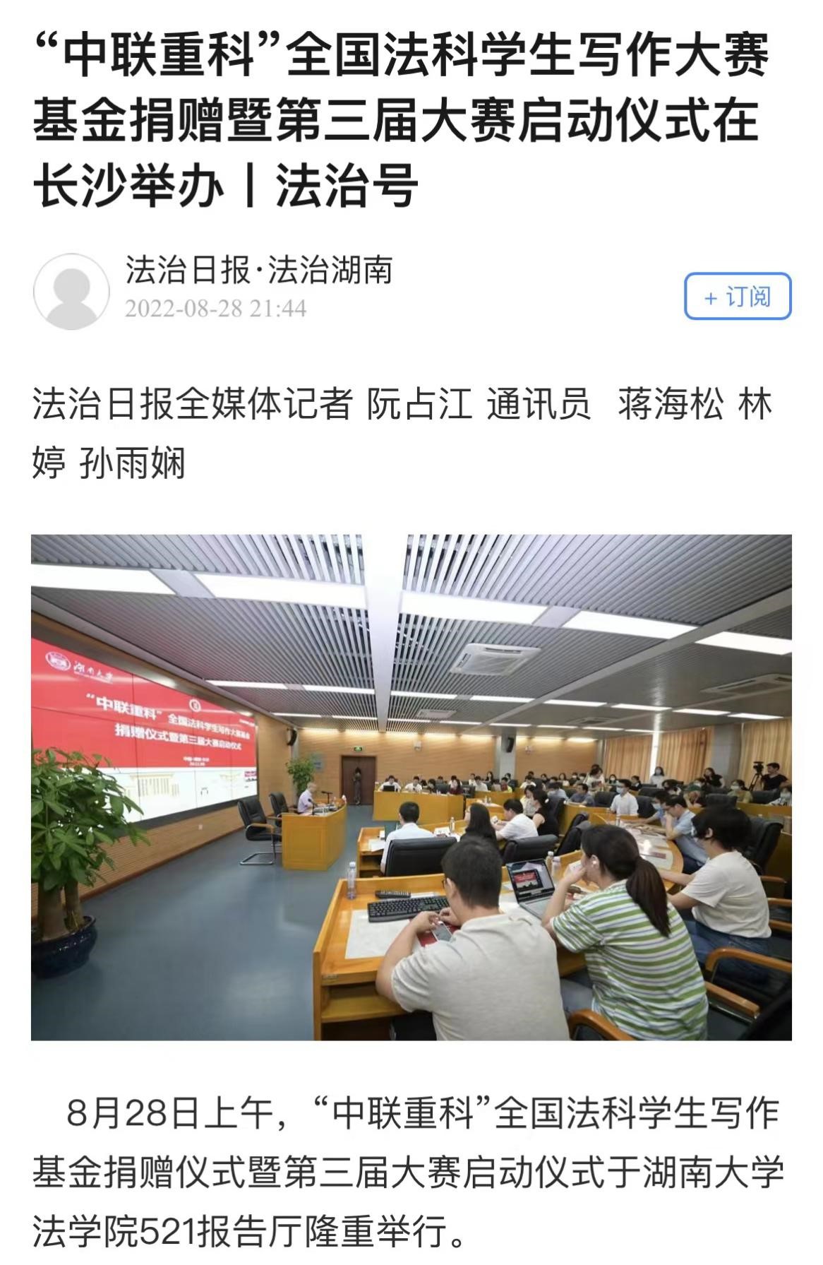 2022年8月28日上午,“中联重科”全国法科学生写作基金捐赠仪式暨第三届大赛启动仪式于棋牌游戏官网