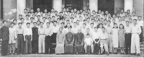 国立湖南大学法律学会民三七级毕业同学合影。前坐排左二为李祖荫,左三为李达