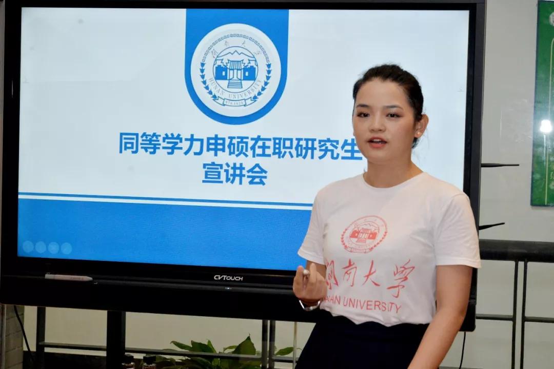 此次宣讲会针对同学们最关心的几个问题展开,主要分为四大板块,分别为湖南大学及法学、公共管理专业发展简介;湖南大学在职研究生培养渠道及方法简介;同等学力申硕学习方式简介以及同等学力申硕资源展示及活动回顾。现场气氛热烈,学生们踊跃提出内心疑问,并一一得到详尽解答。