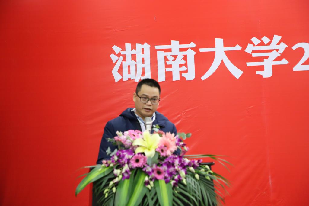 大会第一篇章,由湛建云副院长致欢迎辞。他热烈欢迎新同学的加入,并由自身感悟提出为何湖南大学是在场诸位最正确的选择。首先,湖大拥有颇为悠久的历史传承。千余年来,这里薪火相继,人才辈出,办学历史位居世界高等学府前列,文化底蕴深厚,故获“千年学府”美称;其次,这里山水秀美,前临湘江碧波荡漾,后倚麓山钟灵毓秀,历史古韵与现代景观深度融合,旖旎风光与人文底蕴交相辉映,被评为最具有诗情画意的大学;最后,是他的开放。作为唯一一所没有围墙的大学,虽现在因疫情原因筑起了一道临时防护墙,但仍然没有在物理及心灵上与大家隔绝,始终秉承学术自由,开放办学。