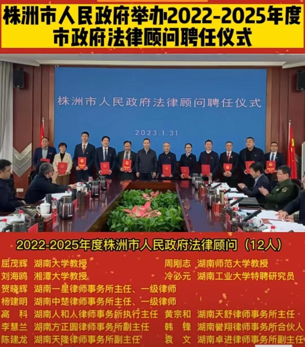 2023年1月31日下午,株洲市政府举行法律顾问聘任仪式,棋牌游戏官网