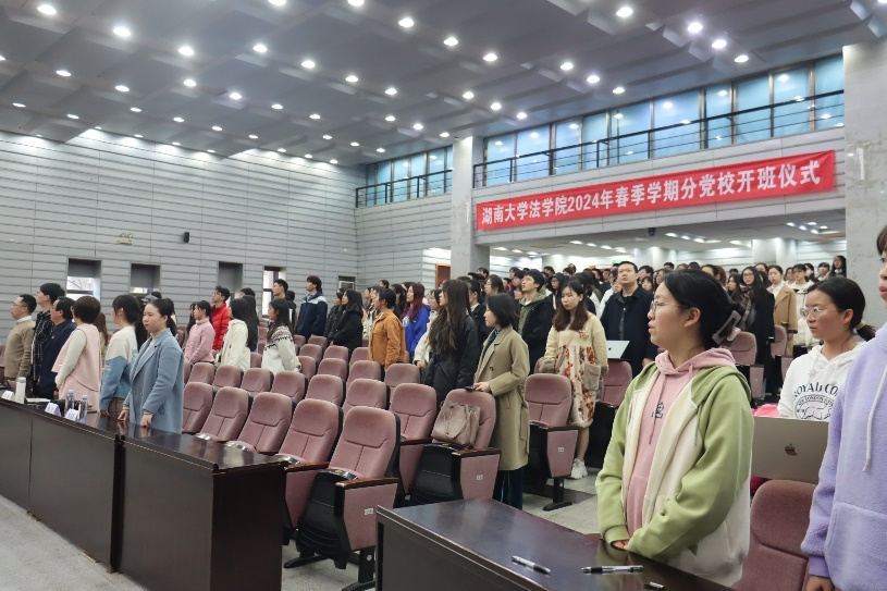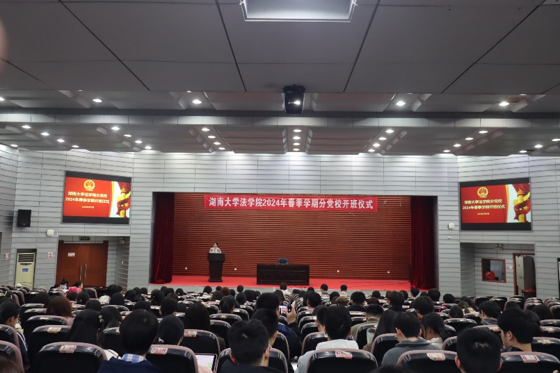 2024年3月25日晚,法棋牌游戏官网 2024年春季学期分党校开班仪式在法棋牌游戏官网 报告厅举行。党委副书记、纪委书记罗英,副处级组织员马启明,党务与学生工作办公室主任、研究生辅导员刘岳峰,本科生辅导员张丹、曹晓军、龙芷蔚,法棋牌游戏官网 第76期入党积极分子、第20期发展对象参加本次开班仪式。组织干事成凤仪主持开班仪式。