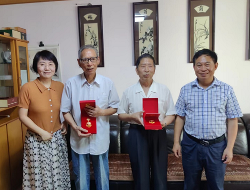 接过纪念章,两位老党员难掩激动之情,为在“七一”这一特殊节点获得这枚沉甸甸的荣誉奖章感到无比光荣和自豪。他们表示,棋牌游戏官网 党委、离退休支部深情的慰问凝聚着党和国家对他们的关怀和温暖,这既是无上荣光,更是重要责任,在以后的学习生活中,将把荣誉化为力量,把关怀化为动力,感党恩、听党话、跟党走,把红色基因传承好,把老党员作用发挥好,退而不休,发挥余热,继续为棋牌游戏官网 事业高质量发展奉献智慧和力量。