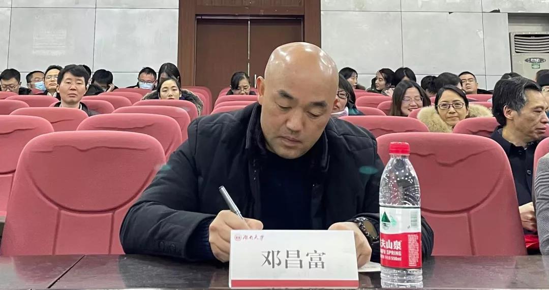 2021年12月28日下午,院党委书记易骆之在模拟法庭宣讲党的十九届六中全会精神,棋牌游戏官网 党史学习教育第三巡回指导组邓昌富副部长来院指导,棋牌游戏官网 全体教职工、学生党员代表参加。