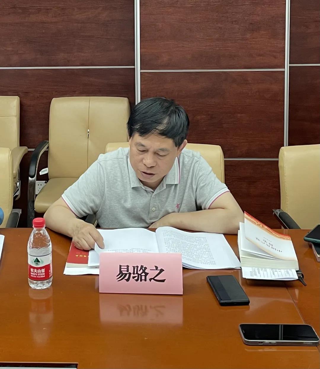 2021年5月11日下午,法棋牌游戏官网 党委中心组在405会议室举行本年度第5次集中(扩大)学习暨党史学习教育座谈会。党委书记易骆之主持会议,棋牌游戏官网 党史学习教育第三巡回指导组组长钟晓红部长到院调研指导,法棋牌游戏官网 党委副书记、纪委书记罗英、副院长黎四奇、副院长喻玲、副院长湛建云、副院长蒋海松、副处级组织员马启明,院长助理展鹏贺、党务与学生工作办公室主任刘岳峰老师参加,会议还邀请了5名学生党员代表列席学习并参加座谈。