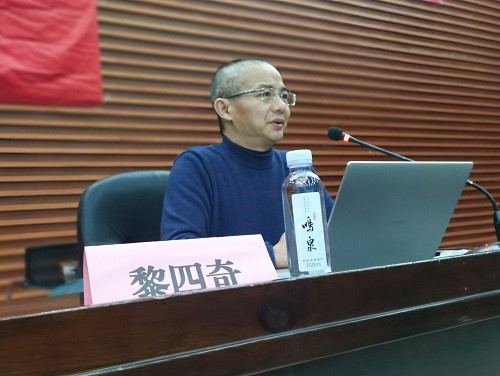 2021年4月13日下午,法棋牌游戏官网 分党校第五讲在棋牌游戏官网 报告厅举行,法棋牌游戏官网 副院长黎四奇应邀做题为“以实际行动争取做一名合格的共产党员”的党课讲座。棋牌游戏官网 第70期入党积极分子、第12期发展对象及培训班学员159人参加本次学习。