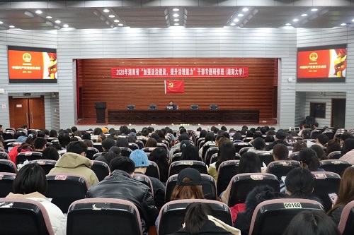 2020年12月1日晚,棋牌游戏官网 在法棋牌游戏官网 报告厅举行棋牌游戏官网 分党校第68期培训班开班式。法棋牌游戏官网 党委书记易骆之、党委副书记、纪委书记罗英、党务与学生工作办公室主任刘岳峰、本科生辅导员郑琼英和美丽努尔出席开班式,法棋牌游戏官网 第68期入党积极分子、党员发展对象和新生党员参加开班式。开班式由棋牌游戏官网 党务干事成凤仪老师主持。