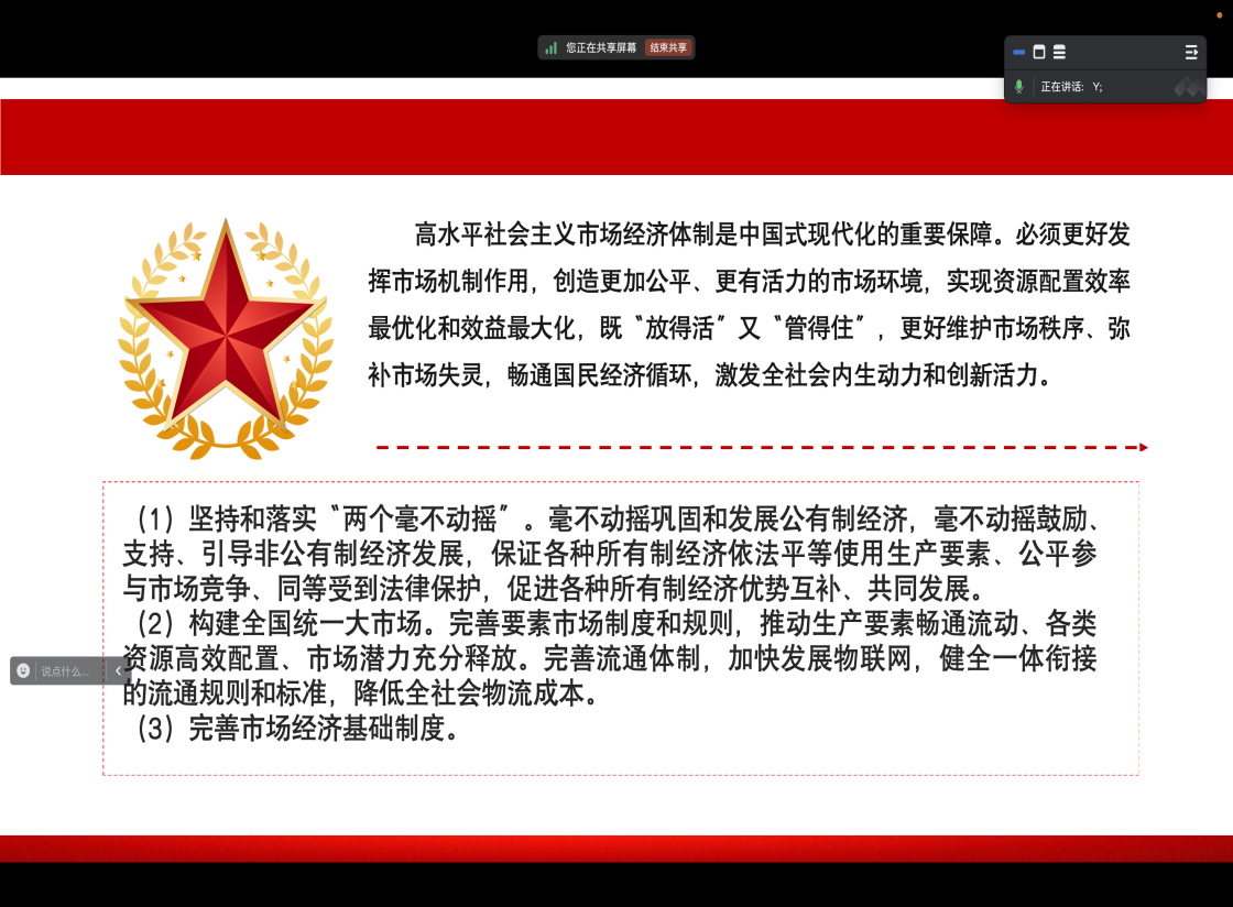 《决定》明确了改革的目标、方向和重点,包括构建高水平社会主义市场经济体制、发展全过程人民民主、建设社会主义文化强国等多个方面。上述举措旨在全面提升国家综合实力和人民生活水平,为人民群众创造更加美好的生活。支部同学在学习过程中,纷纷表示对国家的未来发展充满信心,并愿意为实现中华民族伟大复兴的中国梦贡献自己的力量。